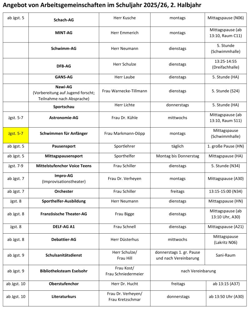 Im aktuellen 2. Schulhalbjahr 2025/26 werden folgende Arbeitsgemeinschaften angeboten: