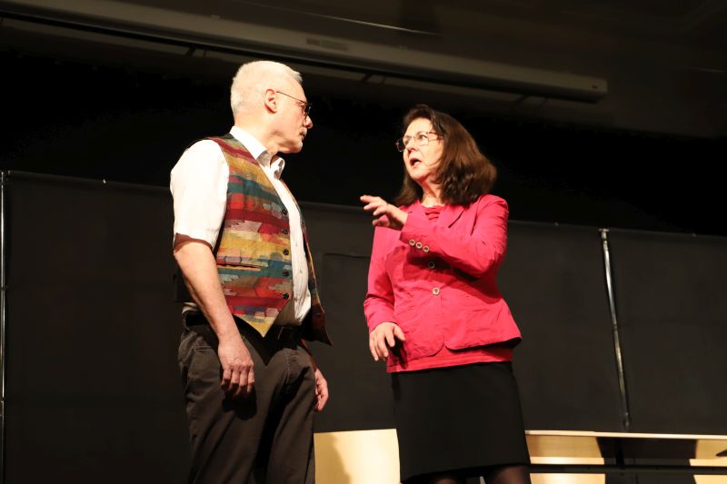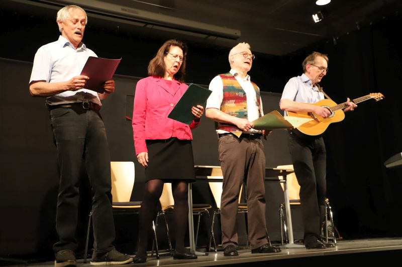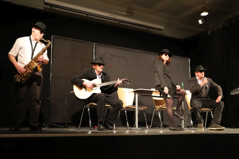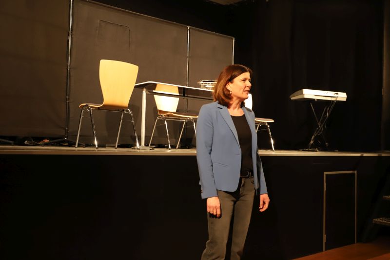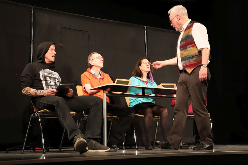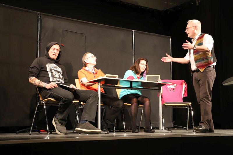 Die stellvertretende Schulleiterin Dr. Barbara Kühle übergab die Bühne nach der Begrüßung an das Ensemble, das eine Auswahl prägnanter Szenen aus mehreren Jahrzehnten Lehrerkabarett präsentierte – ein „best of“ quasi. Im Zentrum stand die kritische Selbstbefragung eines Berufsstandes zwischen pädagogischem Anspruch und institutionellen Vorgaben. Ein roter Faden in der Gedankenwelt der „Daktiker“ war die „Analyse“ des fiktiven Städtischen Adolphinums. Schulleiterin Lengowski sowie die Herren Krick, Lass und Müller-Liebenstreit traten als Task Force auf, die mit vier Jahrzehnten Erfahrung die Bildungslandschaft vermaßen – von Chancengleichheit bis Föderalismus in der Kultusministerkonferenz.