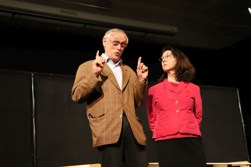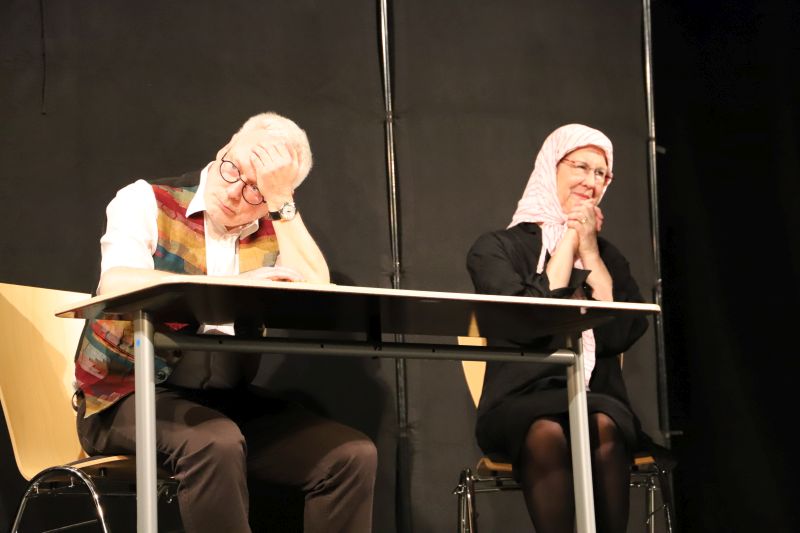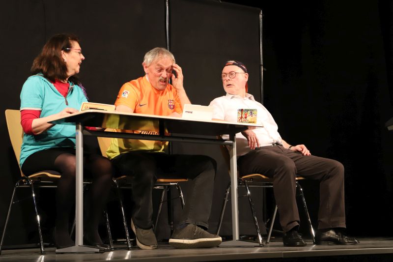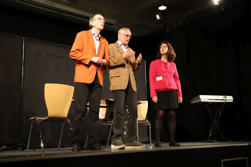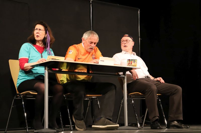Weitere Nummern widmeten sich Lehrertypen, Bürokratie und alltäglichen Belastungen durch Papierkram und nervige Schüler. Am „Elternsprechtag“ wurden sprachliche Hürden sichtbar, bei der Kommunikation mit Hilfe eines Übersetzungslexikons mit Eltern. „Poker“ um den Schuletat, Inklusion („was gut gemeint ist, wird nicht immer gut gemacht“), Pisa-Schuldzuweisungen und mehr ließen an dem Abend satirisch treffend Schule sich selbst erkennen.