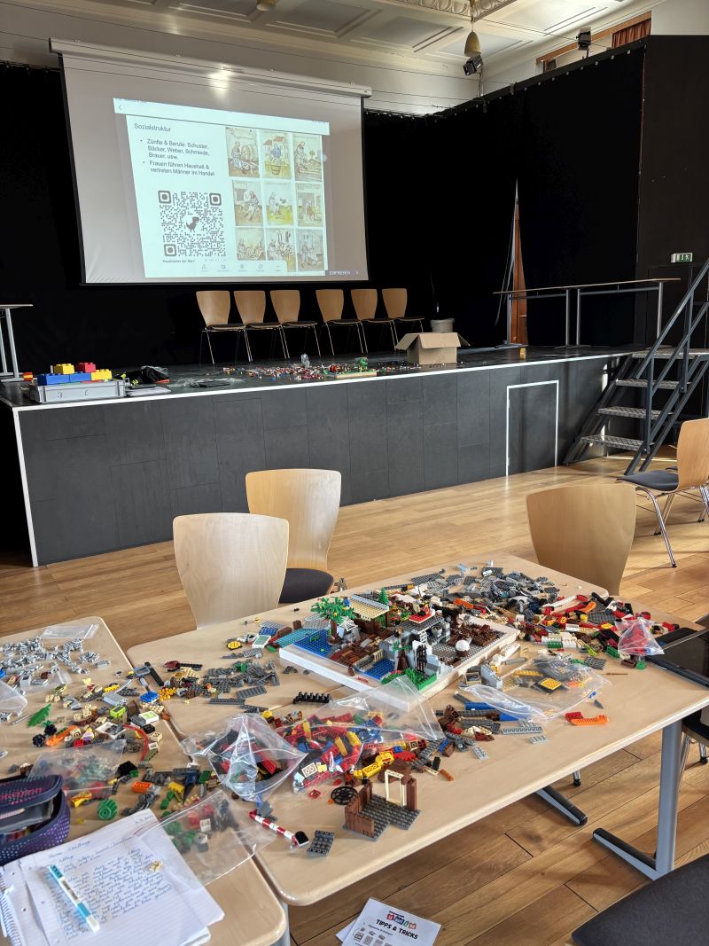 Im Mittelpunkt der ersten Staffel steht die kreative Auseinandersetzung mit der Hanse-Zeit. Ziel ist es, dass sich die Kinder intensiv mit den Themen Rohstoffe, Handel, Siedlungsbau sowie Alltag, Kindheit und Spiele im Mittelalter beschäftigen. Und wie gelingt das am besten? Mit 12 Kilogramm Lego pro Team! Diese beeindruckende Menge stammt aus dem Lebertigo Museum – einem Aktionsmuseum in Winterberg, das sich ganz der kreativen Arbeit mit Lego verschrieben hat. Als die schweren Boxen geöffnet wurden, war die Stimmung kaum zu toppen: Es fühlte sich an wie ein vorgezogenes Weihnachtsfest. Staunen bei so viel Lego, aufgerissene Augen, begeisterte Ausrufe – und dann sofort: planen, bauen und ausprobieren. So wachsen mit beeindruckender Kreativität in den Teams zwischen bunten Steinen und Bauplänen nicht nur kleine Hansestädte, mittelalterliche Handels- und Alltagszenen, sondern auch Selbstvertrauen, Teamgeist und historische Neugier.
