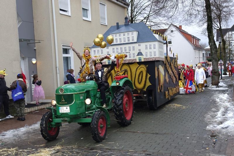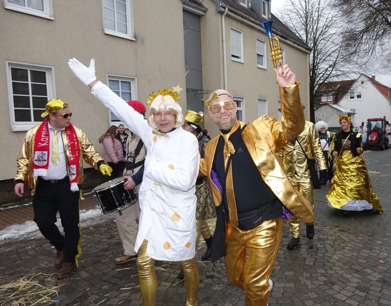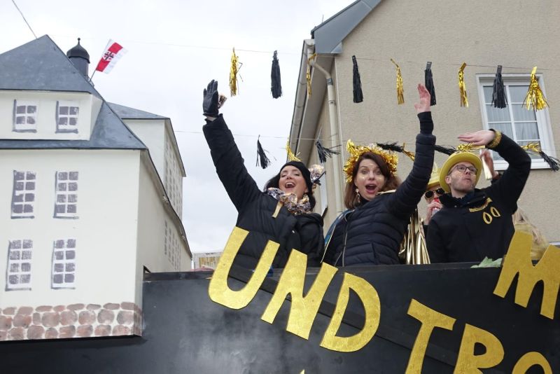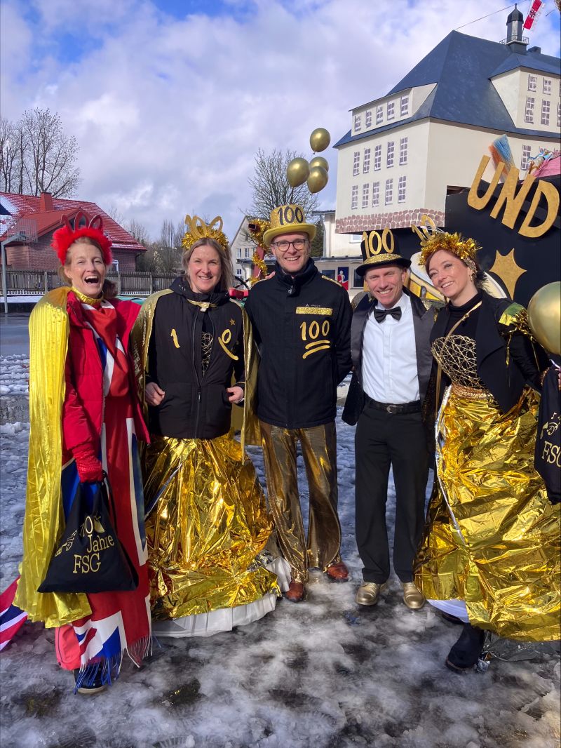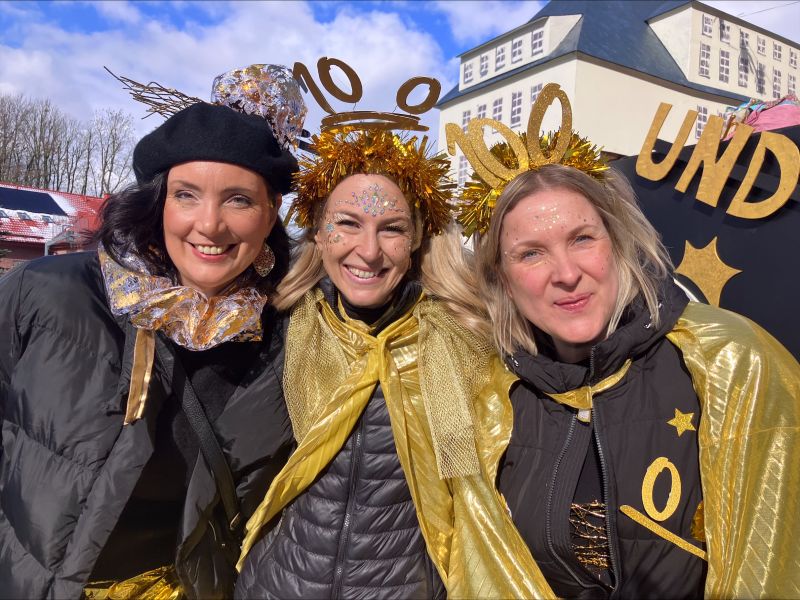 Auch farblich blieb man dem Jubiläumsmotto treu: Unter dem Leitgedanken „old but gold“ präsentierten sich Wagen und Kostüme in festlichen Goldtönen. Die „goldenen“ Lehrerinnen und Lehrer funkelten bei strahlend blauem Rosenmontagshimmel im Sonnenschein und verbreiteten beste Laune entlang der Zugstrecke. Mit Pauken, Trompeten und ausgelassener Stimmung wurden nicht nur Kamelle verteilt, sondern vor allem ein starkes Gemeinschaftsgefühl sichtbar.