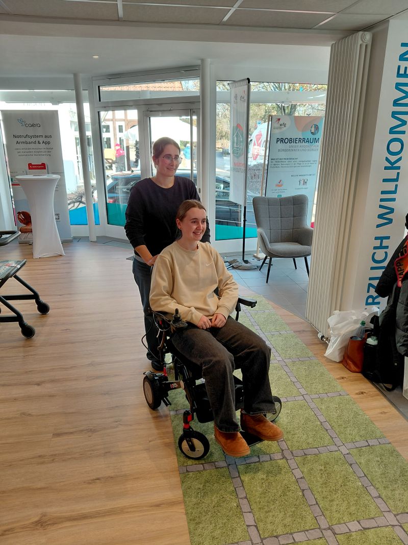 Im ersten Modul lernten die Schülerinnen verschiedene digitale Hilfsmittel kennen, die Menschen mit Bewegungseinschränkungen unterstützen – etwa elektronische Rollstühle oder moderne Pflegebetten. Dabei wurde deutlich, wie digitale Technik den Arbeitsalltag von Pflegekräften erleichtert, zum Beispiel durch Zeitersparnis, körperliche Entlastung oder die frühzeitige Erkennung gesundheitlicher Komplikationen durch Monitoring-Systeme.