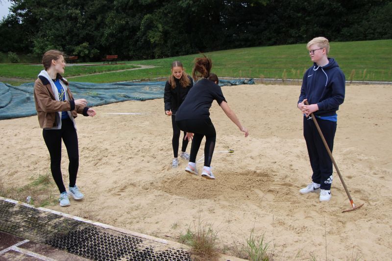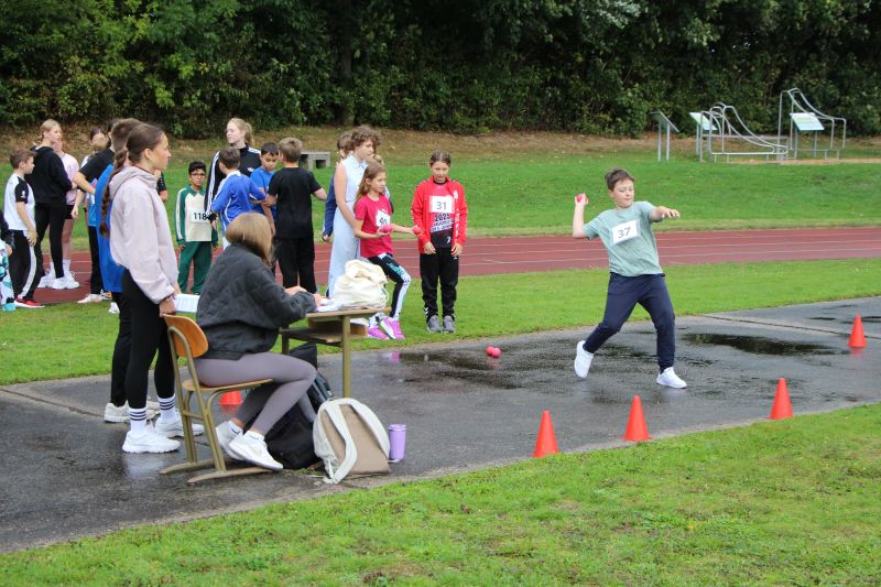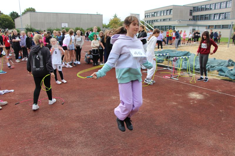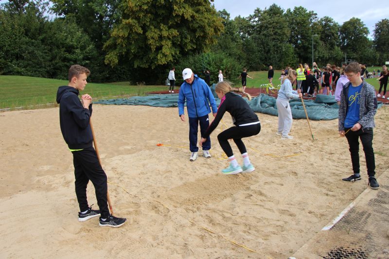 Ganz im Zeichen des Sports stand der heutige Donnerstagvormittag für die jüngeren Schülerinnen und Schüler des Friedrich-Spee-Gymnasiums: In den ersten beiden Stunden fand für sie der Sportabzeichentag auf dem Sportplatz und in der Neubau-Sporthalle statt. In dieser Zeit konnten sie miteinander beim Springen und Werfen in den unterschiedlichen leichtathletischen Disziplinen miteinander wetteifern und auch die verschiedenen Anforderungen im Bereich Turnen absolvieren. Dabei sah man in vielen Gesichtern, mit wieviel Freude und gleichzeitig sportlicher Motivation die Schülerinnen und Schüler der Jahrgangsstufen 5-8 teilnahmen und dabei nicht nur die ein oder andere sportliche Höchstleistung vollbrachten.