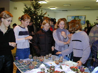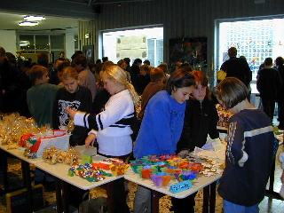 RÜTHEN" Was gab es nicht alles zu erstehen: Selbstgebastelte Hexenhäuschen aus Butterkeksen, tausende von selbstgebackenen Plätzchen, Dinkel- und Duftkissen, Fensterschmuck, Baumkugeln, Kerzen, Windlichter, Uhren und natürlich Pommes rot weiß wurden gestern Nachmittag beim großen Basar in der Pausenhalle des Friedrich-Spee-Gymnasiums von den Schülerinnen und Schülern aller Klassen feil geboten. Dementsprechend groß war die Resonanz. Über 500 Menschen tummelten sich ab 13 Uhr an den zahlreichen Ständen; neben den Jungen und Mädchen Eltern, Lehrer und interessierte Rüthener.